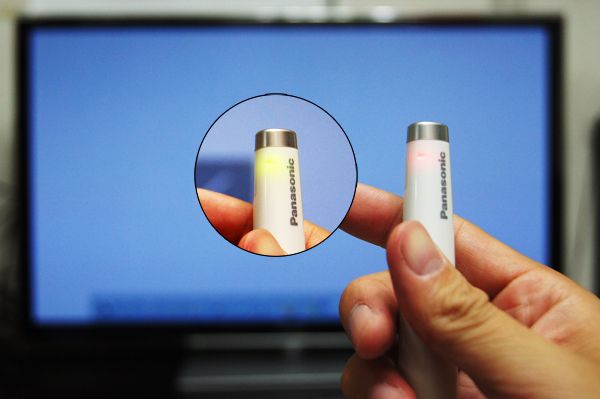 電子觸控筆開機時,會自動連接電視機,觸控筆會先閃紅燈後再閃綠燈,當螢幕上顯示連結完成即成功了,在使用觸控筆時要保持在50公分內,不然會失去連線,如果當筆靜置5分鐘無任何動作時會自動關閉省電,很貼心的設計。
