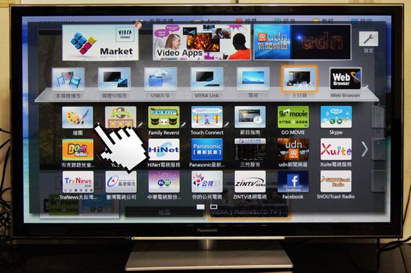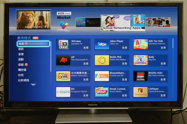 可以讓我們簡單以無線網路連結操控SMART VIERA,更可以直接透過軟體直接做各種影音及檔案的分享,可透過無線分享器或電視內建的基地台連結(此連結似乎不具網際網路的功能)家中因為都有在用 智慧型手機,所以無線分享早就己經設定好,就省了不少的麻煩了,再來只要SMART VIERA 連結上網即可使用其精采的功能。