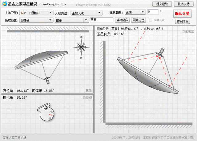 HCH wrote:我就是單星去調.而且...(恕刪) DM500訊號63跟0意思是一樣的,63也是不能看我覺得88C比較好找128C一般都是找4000 垂直(V) 30000 5/64120 垂直(V) 30000 5/6這兩組88C3550 垂直(V) 30000 3/43632 垂直(V) 30000 3/4這兩組因為不在家裡,拿一張頂著,這張是設定11300(138ku用)LNB一定要設定本振05150http://www.canshu.net.cn/wen/dingwei.htm補充一下不一定要在樓頂看指北針,你也可以在你家樓頂的下一層看,以你家牆壁來量長度..也可以知道大致方位很奇怪?竟然會干擾 ???