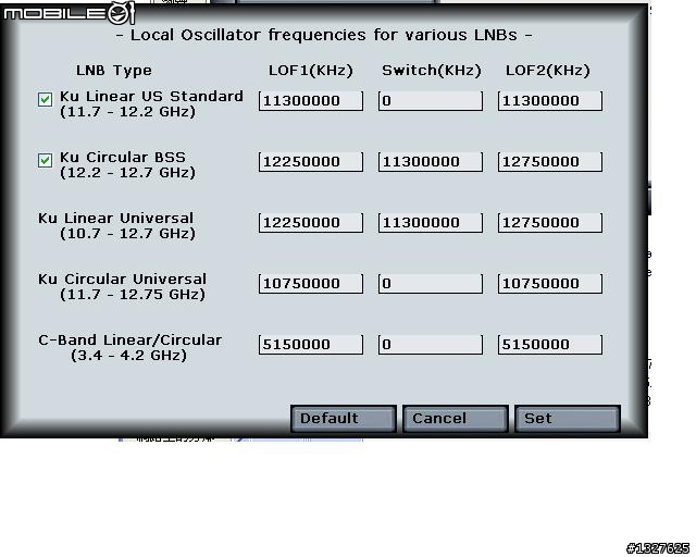 請問一下我目前在用 1020卡搭配Fast Sat Finder軟體尋星,我的LNB是偏焦的LNB本振11300 適應頻率為12.25-12.75 GHZ ,請問,我的FAST SAT FINDER的 LOF1/LOF2/Switch要怎麼設定阿~!我把圖發出來,請大家幫我看看好嗎?目前我是在測試在收146 ku,請大家幫我看一下好嗎?不然我就真的要來買一個蜂鳴的尋星儀來用了。