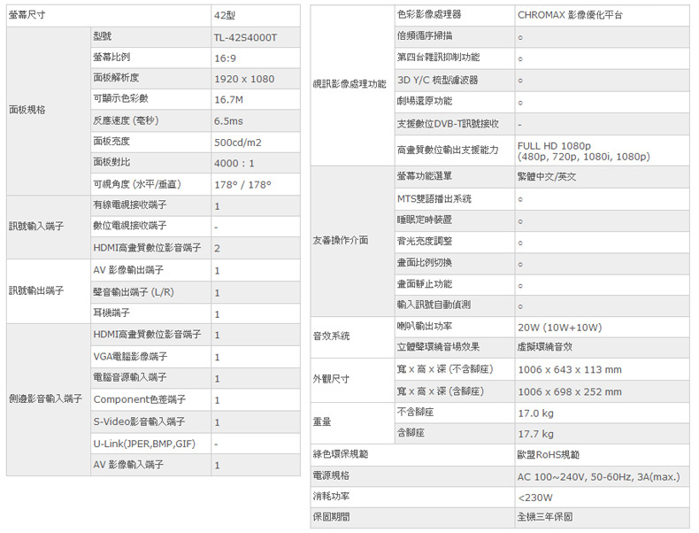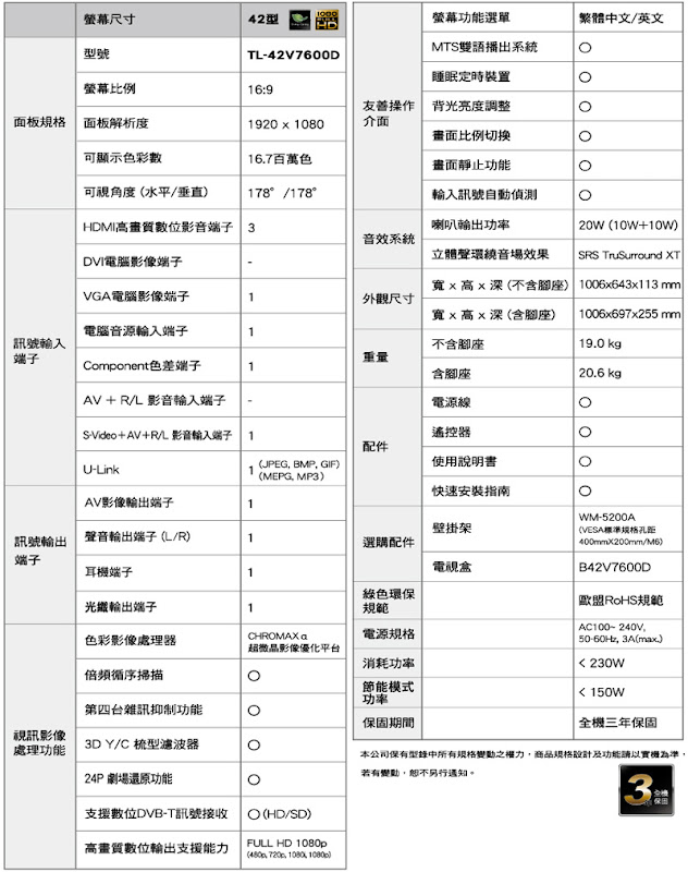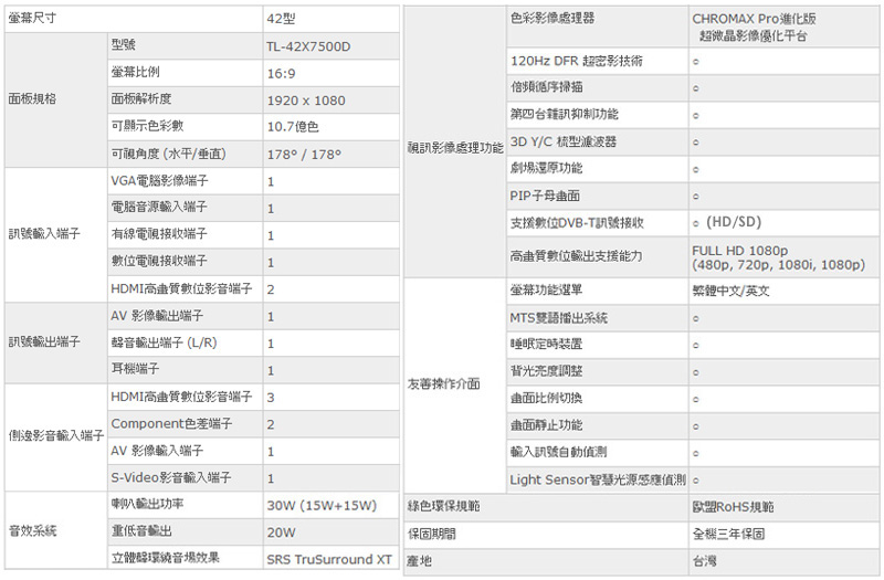 而且光是奇美42吋的螢幕就有TL-42S4000T、TL-42V7600D、TL-42X7500D三種規格