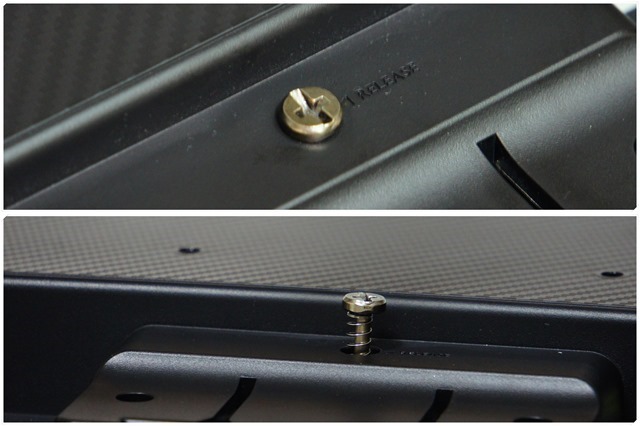 開始進行組合。首先,直接用手將底座螺絲轉開,裝上螢幕支柱後再將螺絲鎖緊。