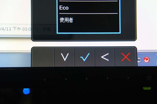 螢幕右下角的控制按鍵指示圖示,以及右上角的型號logo。
