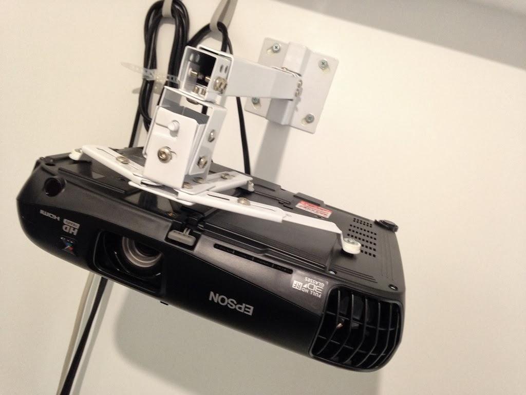 這款壁掛架可調整到投影機鏡頭與壁掛桿呈一直線,所以在安裝時很容易抓壁掛的中心位置。EH-TW550 的按鈕面板很容易操作,第一次使用只要調整焦距、微調水平與梯形校正。A/V Mute <-------> Open 可以輕鬆關上鏡頭蓋,避免沾上灰塵。