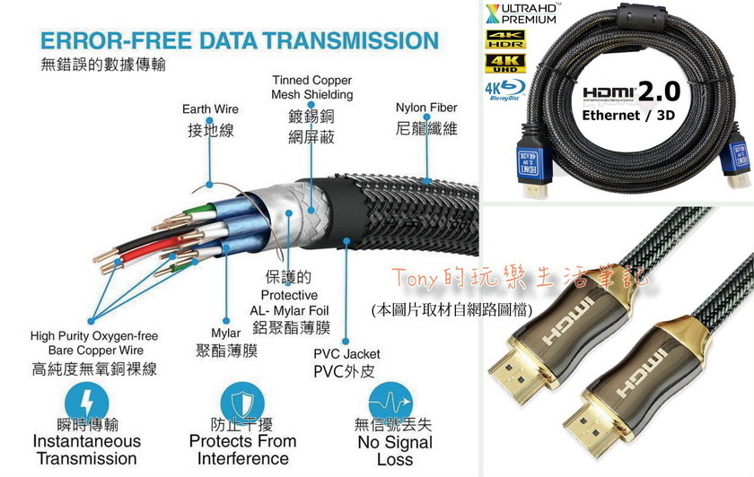 所有的線材中,最不容易感覺到不同的應該是HDMI線,不管用的是1.0版,或是1.4版本,又或是更高階的2.0版本,這中間的差別,如果沒特別仔細比較,其實真的很容易被我們自己的眼睛給騙了