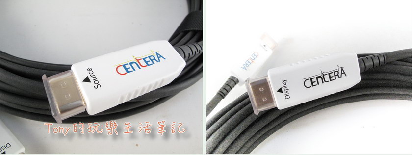 這算是跟銅纜HDMI線不一樣的地方,一般的銅纜HDMI線是不分哪邊接來源,哪邊一定要接終端的,兩邊都可以對調,不用特別注意。但是【Centera HDMI 2.0 AOC光纖纜線】的兩端是有區分的,【Source】是接到影像的來源端,而【Display】則是要接到螢幕這邊,千萬不能搞錯。因為【Centera HDMI 2.0 AOC光纖纜線】兩端內各有不同的電路,【Source】端這邊會把所有端子上的訊號整合壓縮後調變訊號給光纖傳遞到【Display】端,而【Display】端內的電路則是將訊號再解調變回給所有端子對應的訊號,如果接錯邊,那可是不會有任何的影音給傳輸過來的