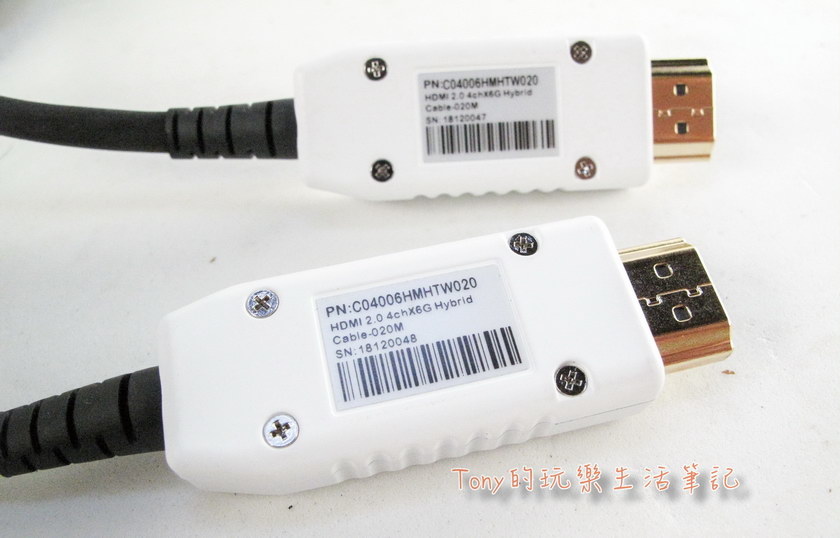 這個接頭,做的不好也是白費的,很多銅纜HDMI線是內外都是鍍金的,不過鍍金都是為讓訊號能有更好的傳遞,鍍金可以降低接觸面的阻抗。但是若插拔太多次,鍍金也是會掉的。【Centera HDMI 2.0 AOC光纖纜線】則是採用外部鋅合金,中間接點依然是鍍金的。原本對為何是鋅合金不太瞭解,經過查證一些資料後,發現在非傳遞訊號的金屬部份,鋅合金能保有更好的抗氧化力,所以【Centera HDMI 2.0 AOC光纖纜線】採用外部鋅合金,因為這部份是不傳遞訊號,鋅合金會有較好的保護力的