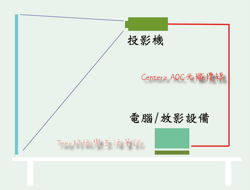 這張圖來看,像這樣接投影機的時候,通常都會需要較長的線來先安裝好。如果是用太長的銅纜HDMI線,真的是有時訊號傳不過去,有時是會產生一些雜訊或其它的干擾問題。但是用【Centera HDMI 2.0 AOC光纖纜線】就沒這些問題,再遠都不怕(只要再裝上對接器將線對接就好,就算是一千公尺都不會有太多的訊號衰減的)