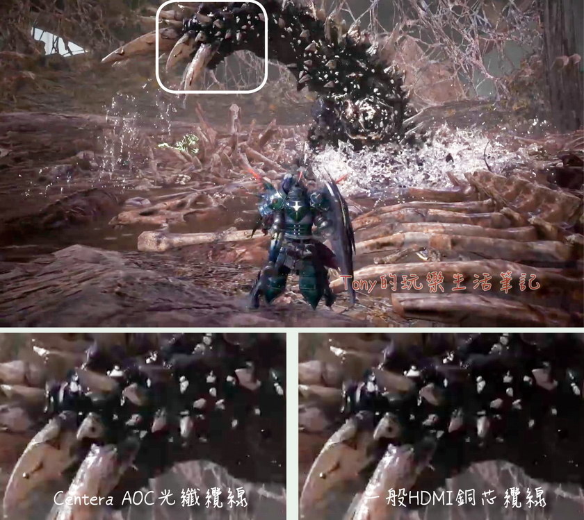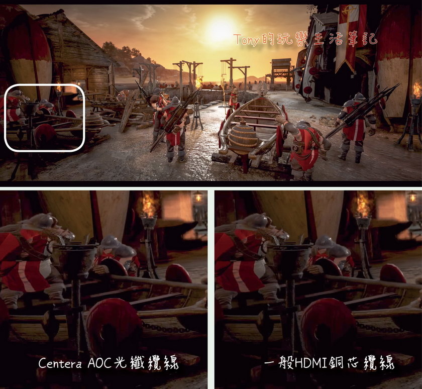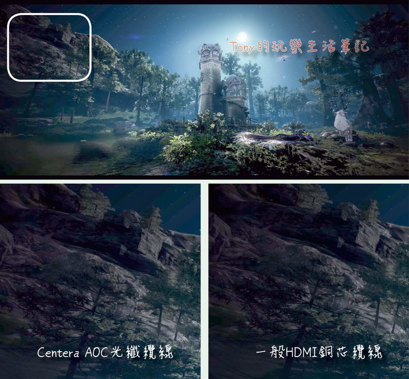這三張圖是我用銅纜HDMI線與【Centera HDMI 2.0 AOC光纖纜線】去抓同一個圖下來做比對
