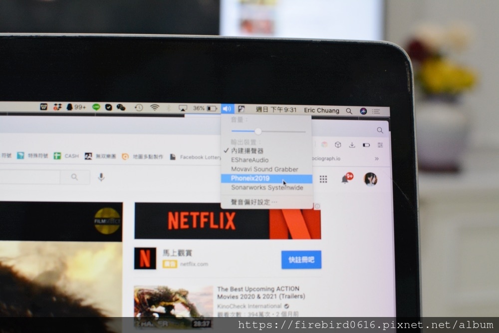 電視沒有聲音?記得要把音源輸出設備設成Phomeix2019,就會透過接收器將聲音輸出至電視或是3.5mm到外接音響設備。