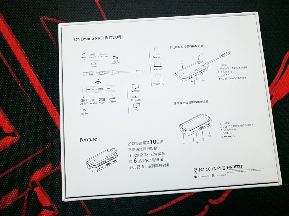 背後有簡易的系統圖,主要功能包含無線影像發射/接收,以及Type-C USB Hub。