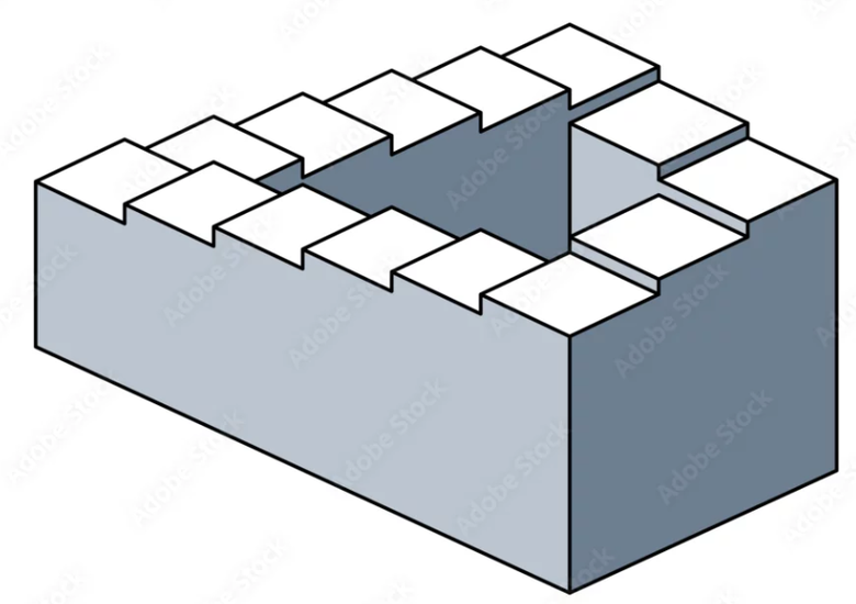 這張圖是一個典型的潘洛斯階梯(Penrose stairs)──看起來一直往上、永遠有更高的台階,但其實整體是兜了一圈,回到了原點。音響產業就像這座「不可能階梯」——看起來永遠有下一級、更貴、聲音更好;但很多年走了一圈才發現,很多時候只是精巧的「錯覺」。