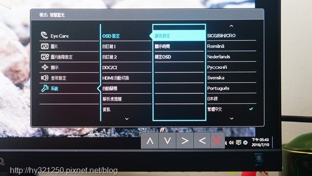 BenQ EW2775ZH光智慧護眼螢幕OSD選單預設語言是英文,所以為了方便使用,就先進系統設定,將語言設定改為繁體中文。