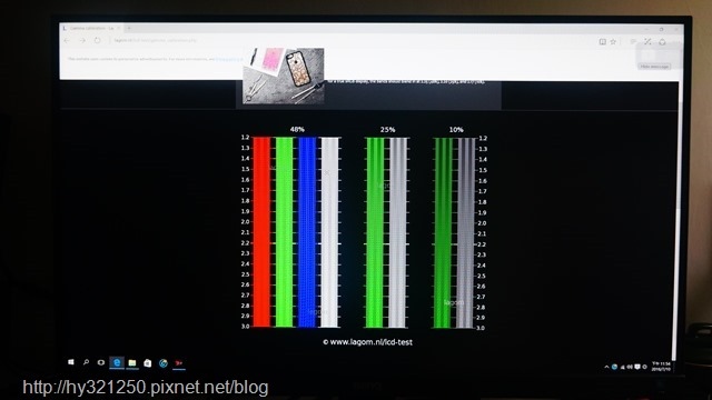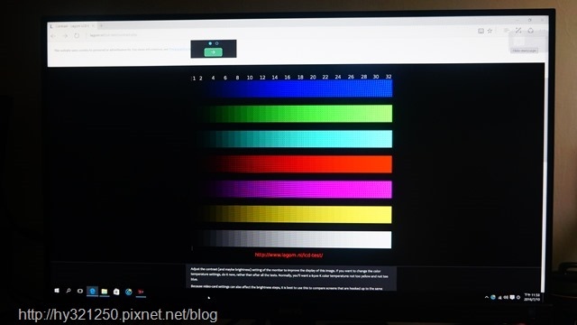 OSD選單顯示語言改好之後,螢幕現在還維持出廠設定值,所以利用線上網站Lagom進行檢測,BenQ EW2775ZH在顏色表現上我個人覺得還不錯,這應該跟這台螢幕是8-bit支援1760萬色有關。