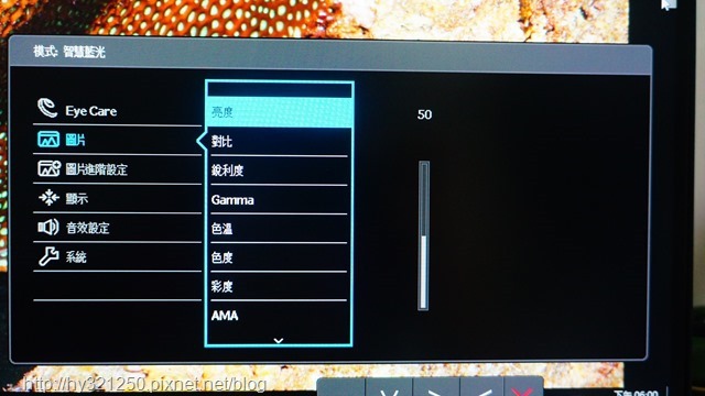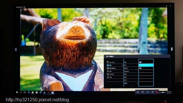 圖片選項中,AMA是改變改善液晶面板的灰階應答速度,有關閉(第一張照片)、高(第二張照片)、與高階(第三張照片)、可以選擇。而這部分,就需要直接看這台螢幕,可能才會比較有感覺。