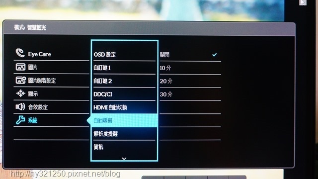 螢幕自動關閉的時間,有10分、20分與30分三項可以選擇。