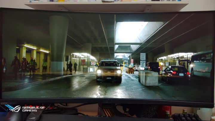 在規格上目前這個螢幕是集最頂尖技術的市售專業遊戲螢幕,不只是玩遊戲連圖片編輯也可以,21:9的比例也能分切雙視窗來多工使用。ROG Swift PG35VQ 集:HDR10、1000nit、 G-SYNC Ultimate、VA面板、DCI-P3 90%廣色域、還有最貴的技術512區陣列背光技術FALD在35吋21:9螢幕上佈置了512區的獨立可控背光技術加強亮度與對比度,在開啟HDR+FALD(局部陣列背光控制)下對比可以達到超過500000:1 的超高動態對比!