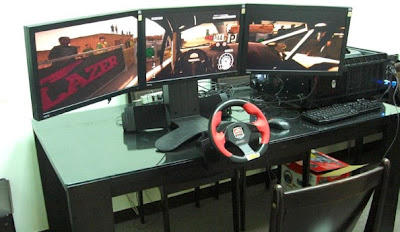 三螢幕大多在重度玩家常見,打賽車或是飛機的GAME很爽!