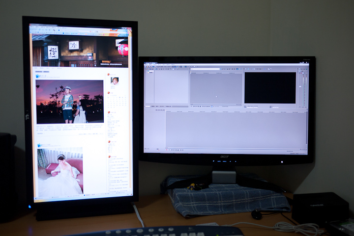 雙螢幕大多是多工的人在用的~一般玩家就很多人這樣玩,打報告寫文案的常需要整頁面顯示,大多會一個直立一個橫的,主要螢幕與工具例拆開來使用