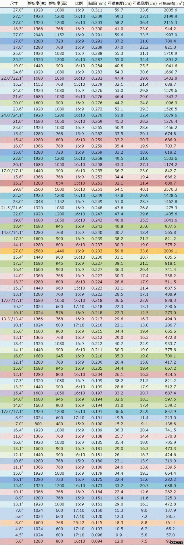 或 25~27吋(1920x1080,記得這高解析要用DVI才不會糊掉啊)