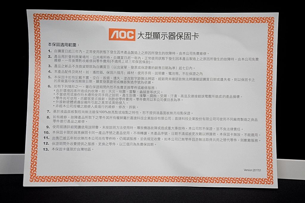 AOC的顯示器,全系列都是三年保固。