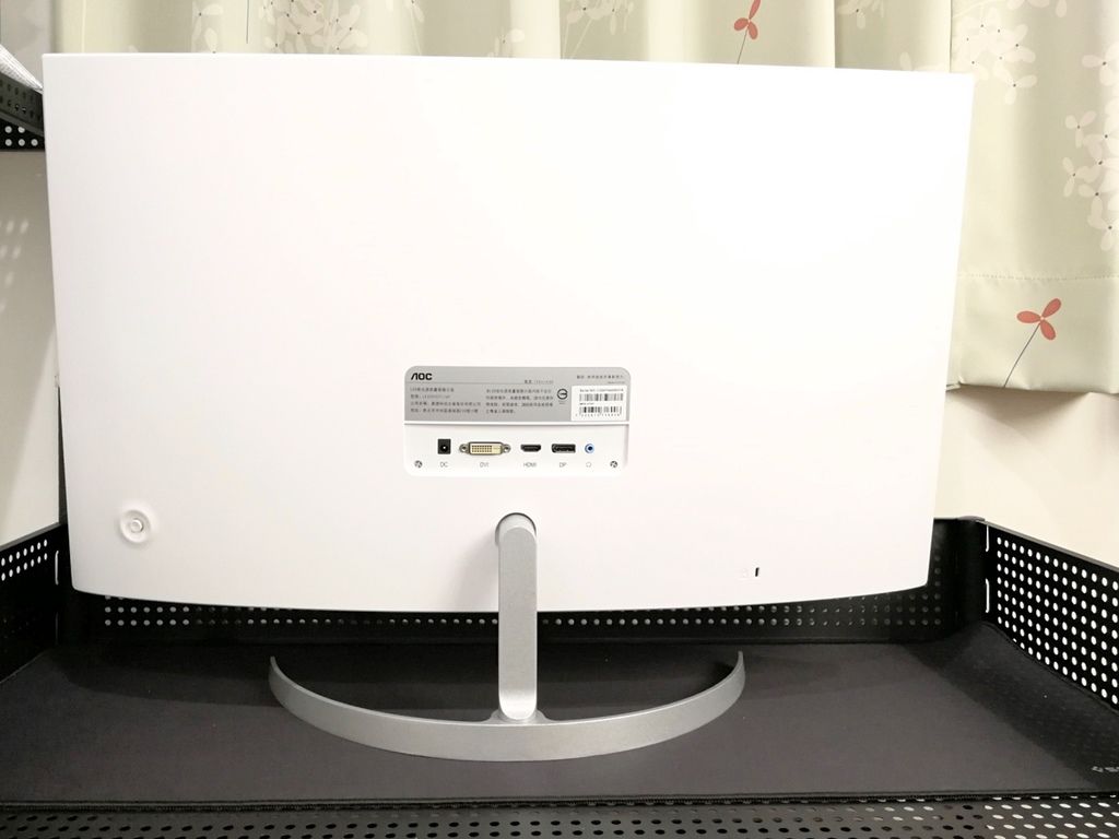 完成組裝後的樣子,螢幕正面作風簡潔,白色細邊框上只有下方加了AOC logo,沒有一絲多餘的設計。