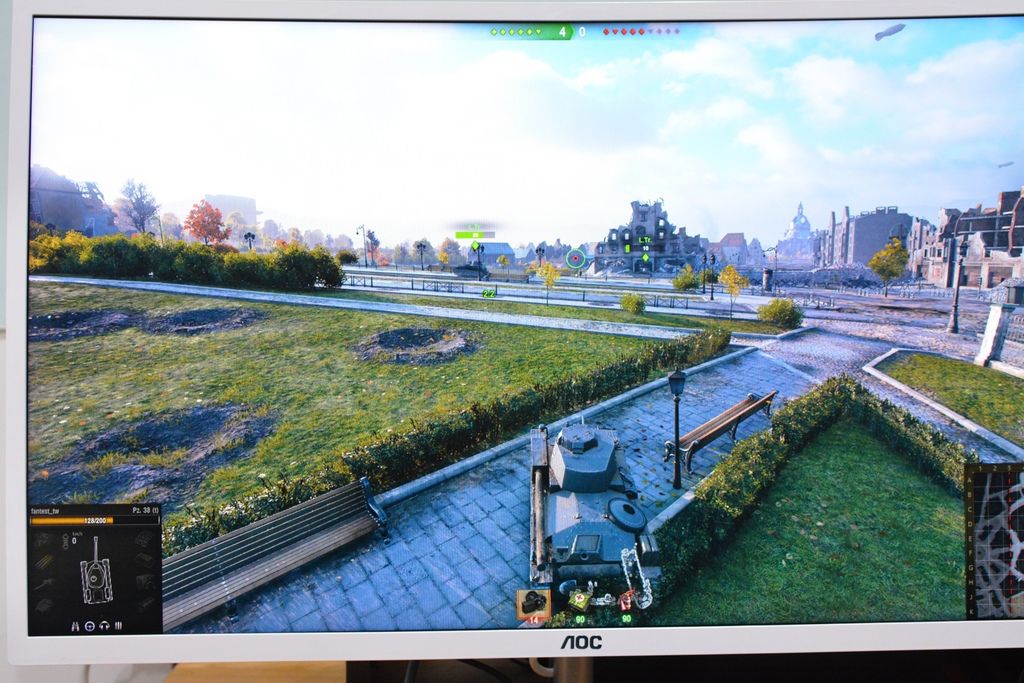 測試戰車世界,體驗二次大戰歐洲戰場的歷史畫面重現,曲面螢幕在這逼真的坦克大戰中,發揮了極大的作用。使用VA垂直式並列,在左右兩側色澤彩度色階完全不扭區,可以快速查覺來自左右邊界出現的敵軍。