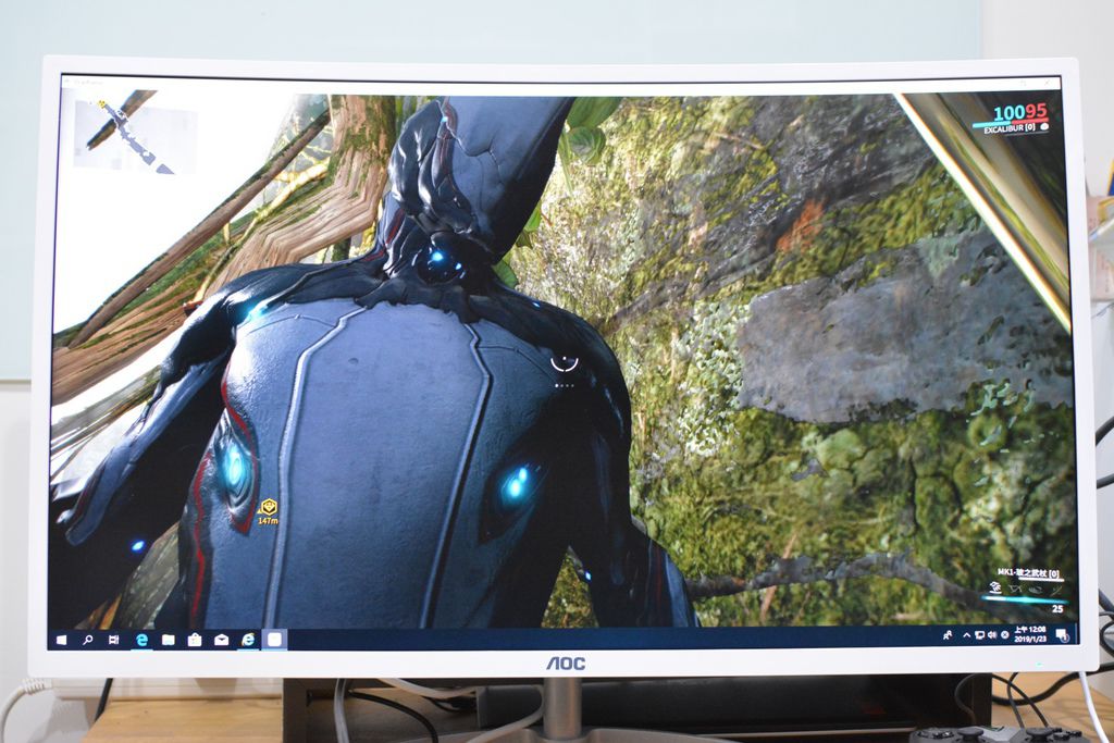 測試3D遊戲Warframe,以DP 144Hz模式連結,畫面極為流暢,就算快速奔跑打鬥中,畫面完全不會產生色塊破格。
