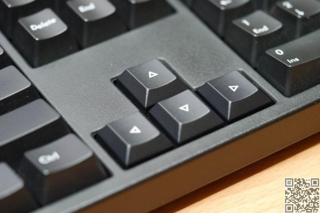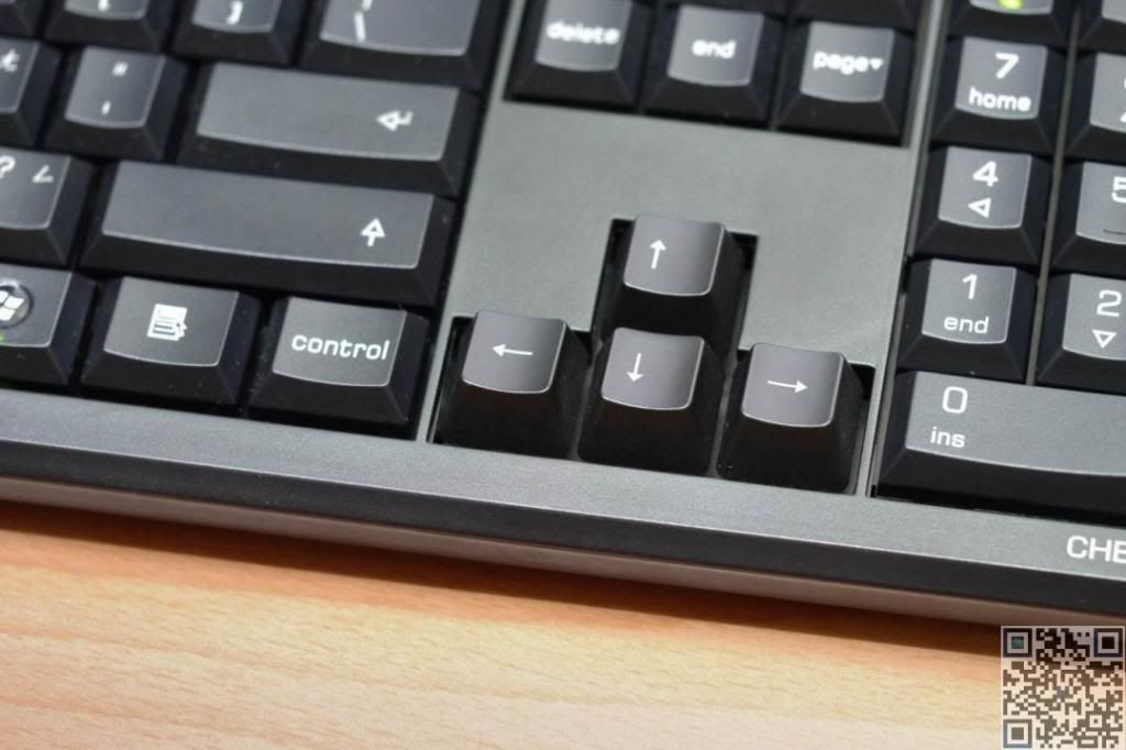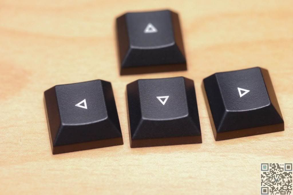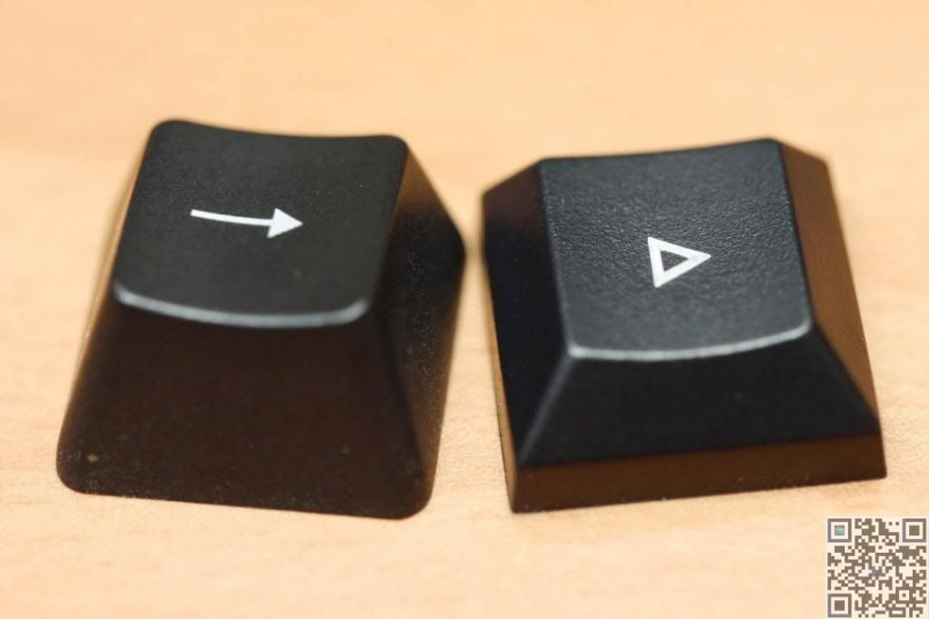圖為 一般 Cherry 鍵盤裝上 MX-Board 3.0 的扁平鍵帽的方向區,在 R1 這個高度下交換鍵帽是沒有什麼太大的問題,主要還是看會不會影響到輸入區域。