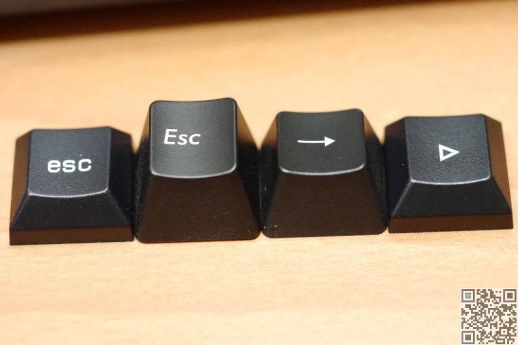 最明顯的為最後一排 esc ,一般的 esc 按鍵都為 R4(RANK4) 高度,方向鍵為 R1 高度,途中可以很明顯的看到差異。