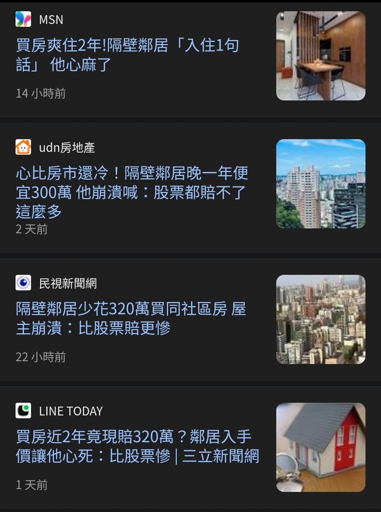 房地產新聞在同時期有漲也會有跌的新聞,今天漲明天就會變跌,這星期跌下個月就會變漲,這月漲下個月就會變跌,房地產新聞看久了就不會覺的奇怪,尤其是現在這時機建商很希望央行能放鬆管制,若一堆新聞都看漲那央行就不可能放鬆,一直有大量房價下跌的新聞而且持續一年多了,結果我看到雙北地區房價還在漲,我都懷疑是不是專挑特例在賣慘想換取央行放鬆管制?