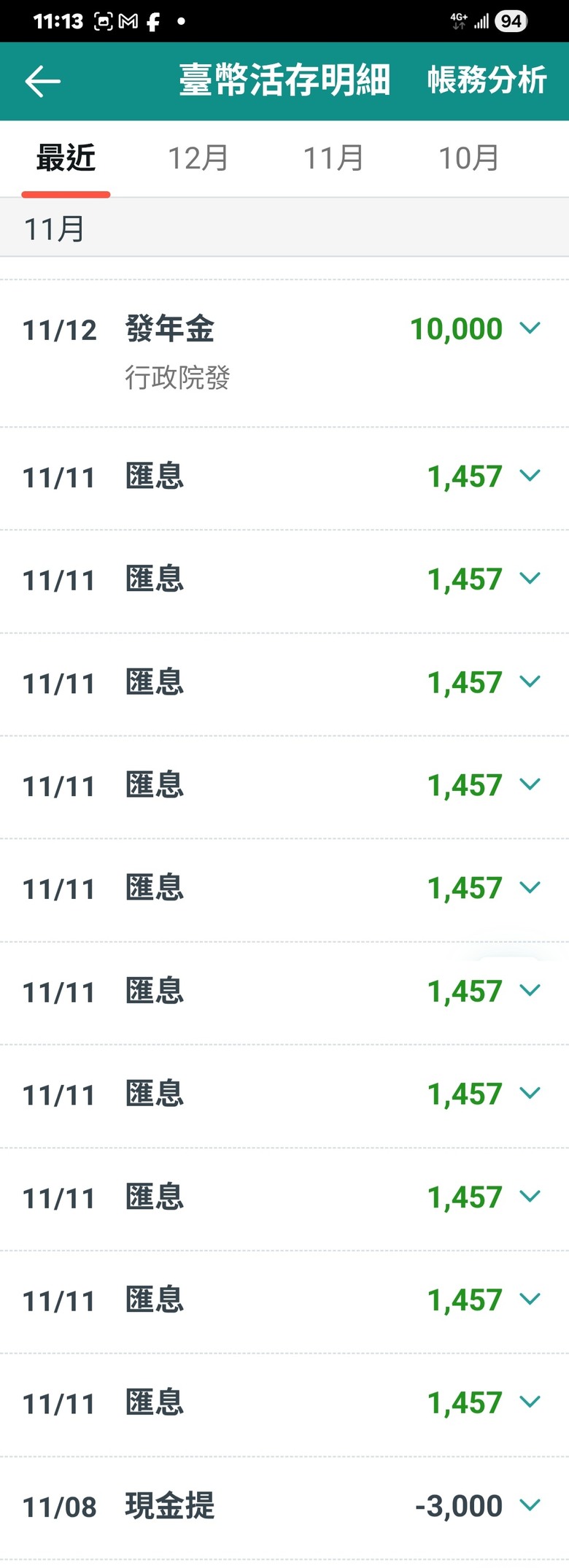 現在每月11日,是某部分的定存領息的日子。(月領息)