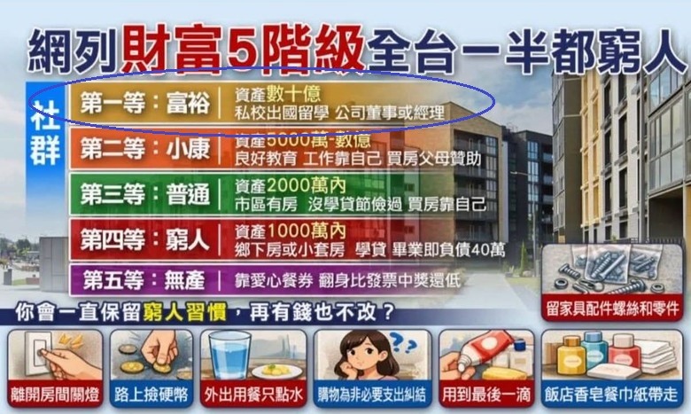 身家資產數十億,圖片中就已經有交代是第一等,中文看不懂?需要幫你翻譯?!
