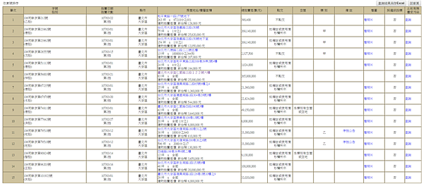 4.選擇完畢後,這個區域的法拍屋會直接呈現在你面前,裡面欄位有【案號】【拍次與時間】【拍賣底價】【點交與否】【看圖】【空屋】等資料