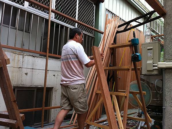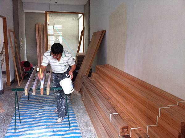 木頭要先上護目油才能施作 這也是為了以後好維護的考量