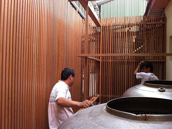 木工師傅也開始把處理好的木料釘上