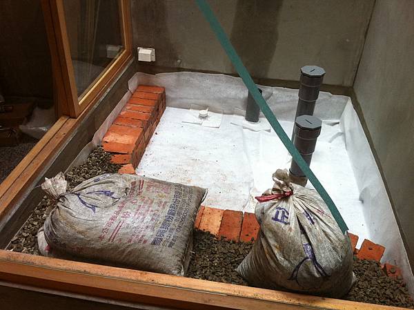 這樣水才排的快!再用磚頭區隔出要有土的位置