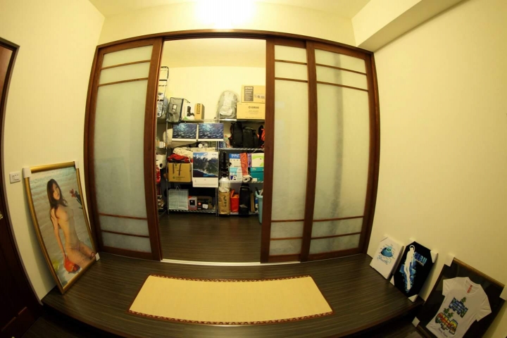 我的資料提供參考,一樣也是架高木地板,四個拉門門片與軌道,當時天花板較高,所以在拉門位置上方有封板,切割成前後區域。