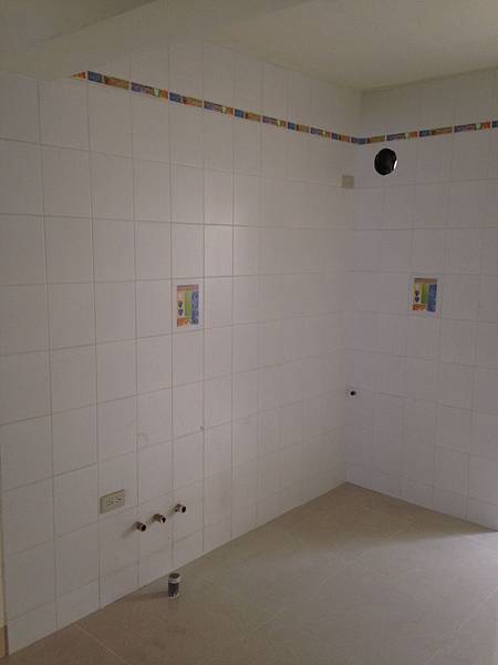 ▲ 老屋管線重拉後,廚房貼上磁磚的樣子 (廚具未進駐)