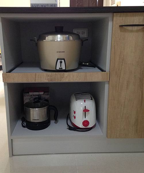 下方現在被我先拿來放置之前租屋用的小電器,未來考慮想要放台烤箱或微波爐。