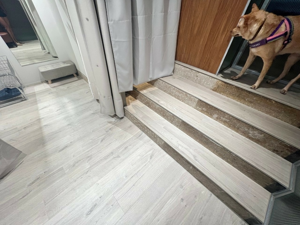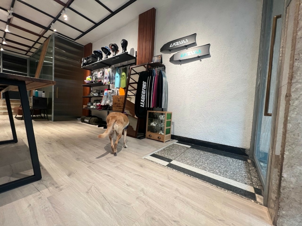 ▼狗狗們也很喜歡這個地板!觸感看起來很舒服,連平常比較怕生的小金都很舒適在店裡走動~特別讓我放心的是,QUICK-STEP快步地板真的不怕狗狗走路刮擦,也不用擔心不小心亂尿尿會傷到地板,對於商業空間來說,實在太重要了!