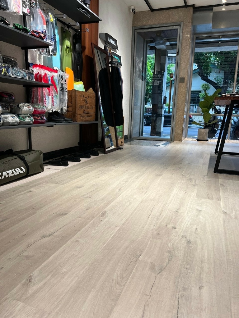 剛好有朋友邀請我到他們店裡走走,發現他們用了木地板,正好可以當個參考!看看實際使用狀況如何。