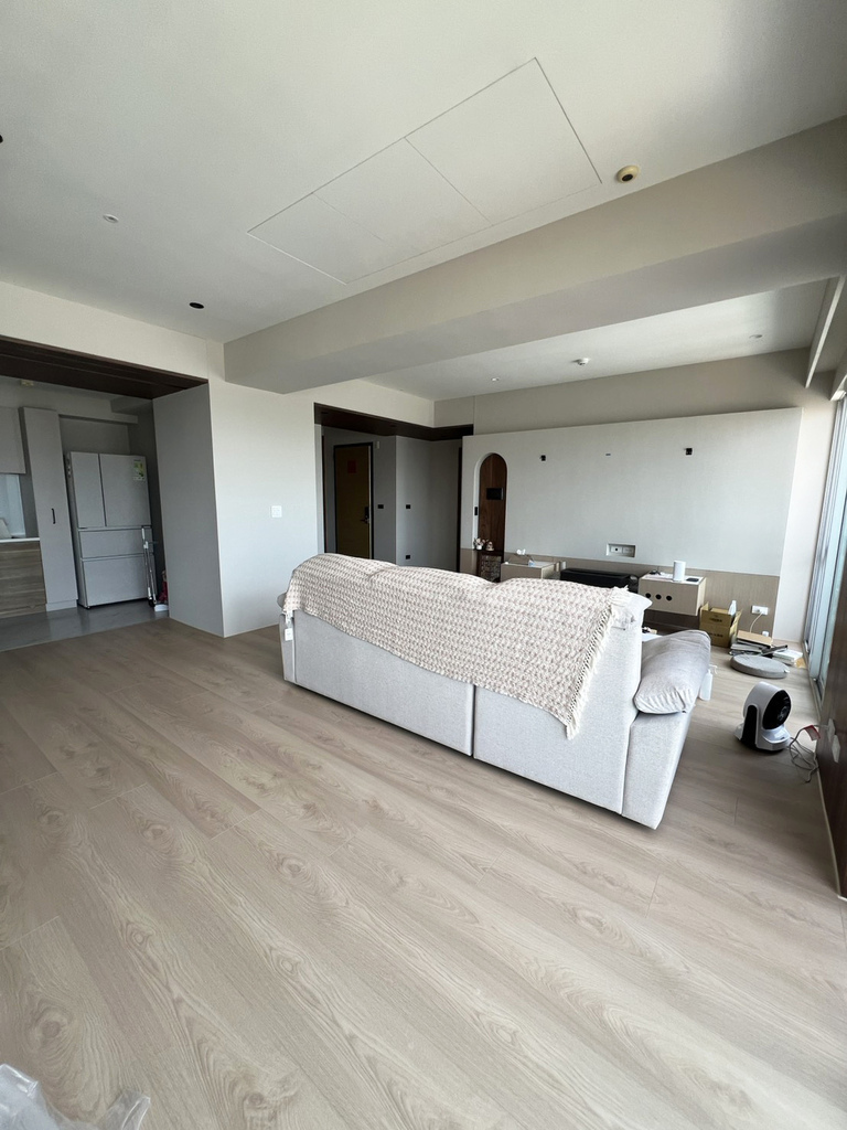 ▼他選的是德國進口krono品牌,「豪華型長版-莊園橡木」這個型號,款式其實滿好搭配的,不管什麼風格都適合,和家具非常搭,色調不只看起來有質感,淺色系的設計還能讓空間看起來更寬敞。