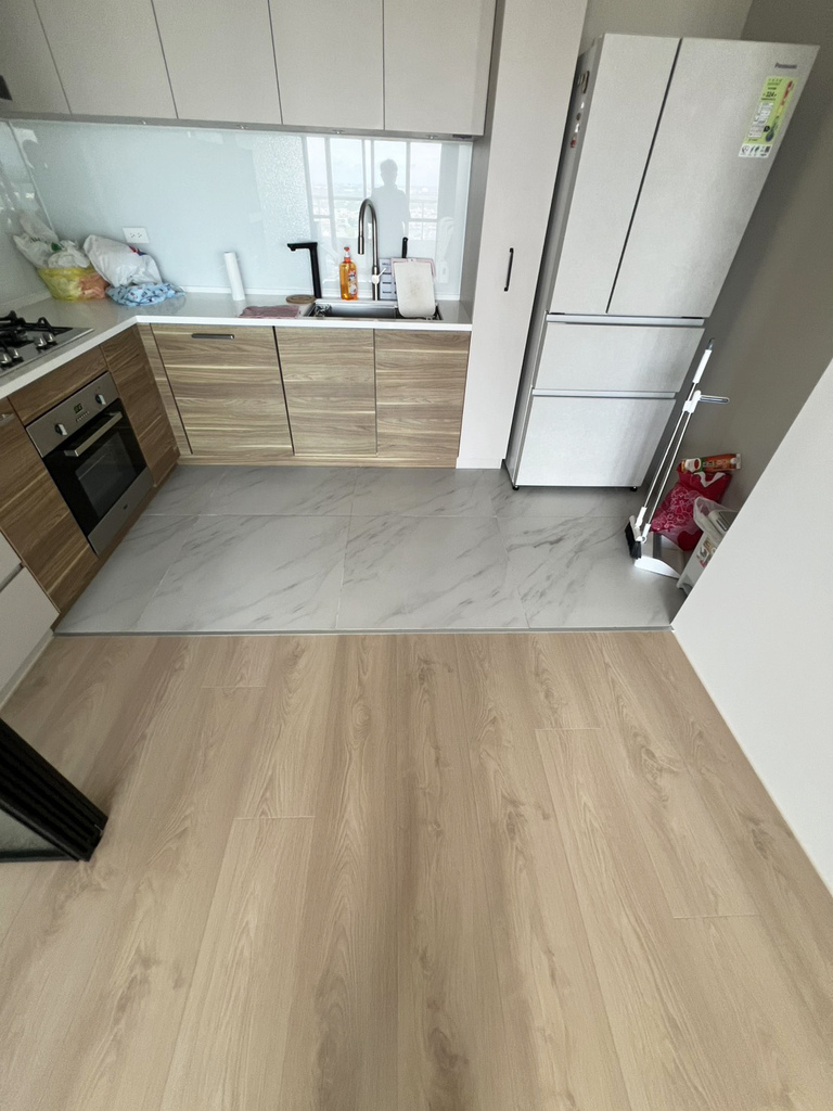 ▼地板的紋理看起來就像實木一樣自然,但比實木更好打理、也更好保養。鋪上去後整個家變得更溫馨,有一種剛剛好的舒服感。