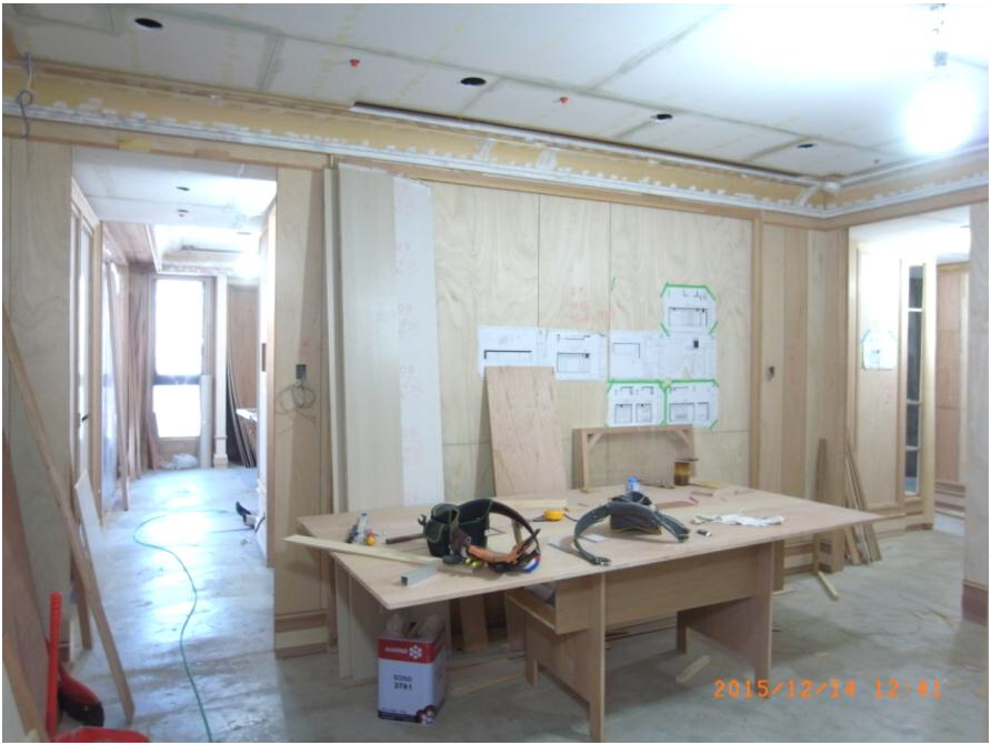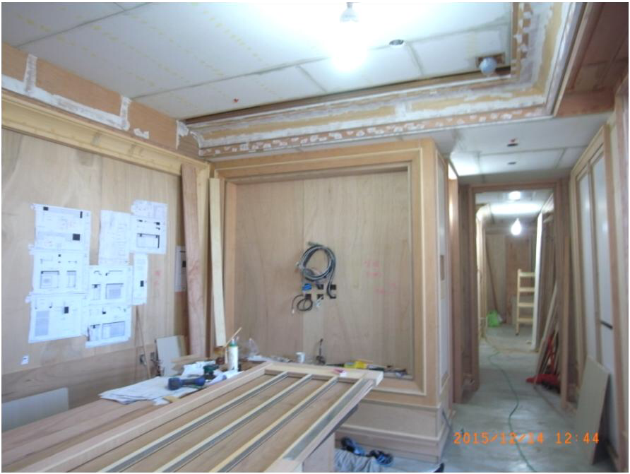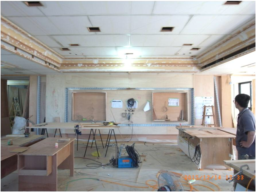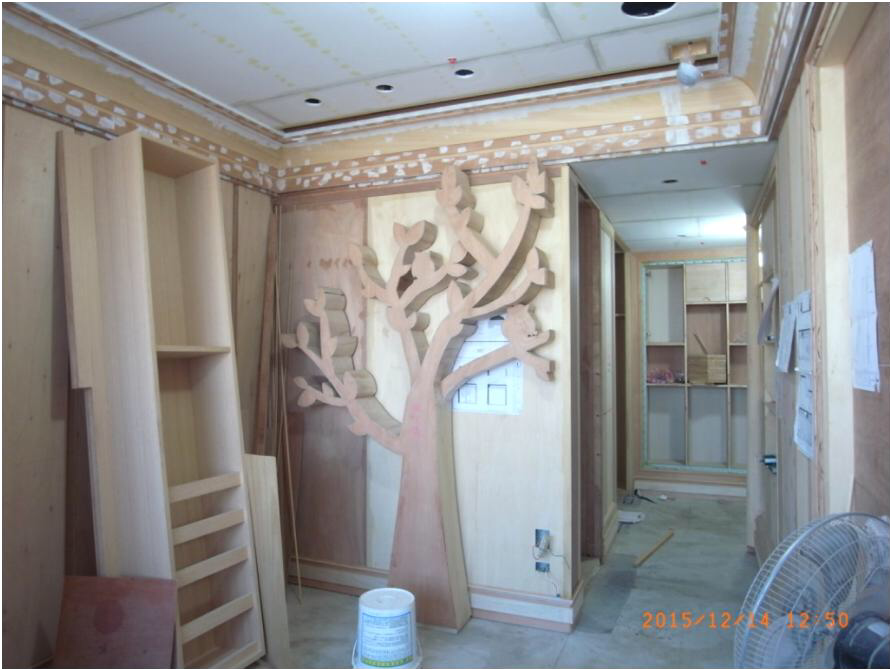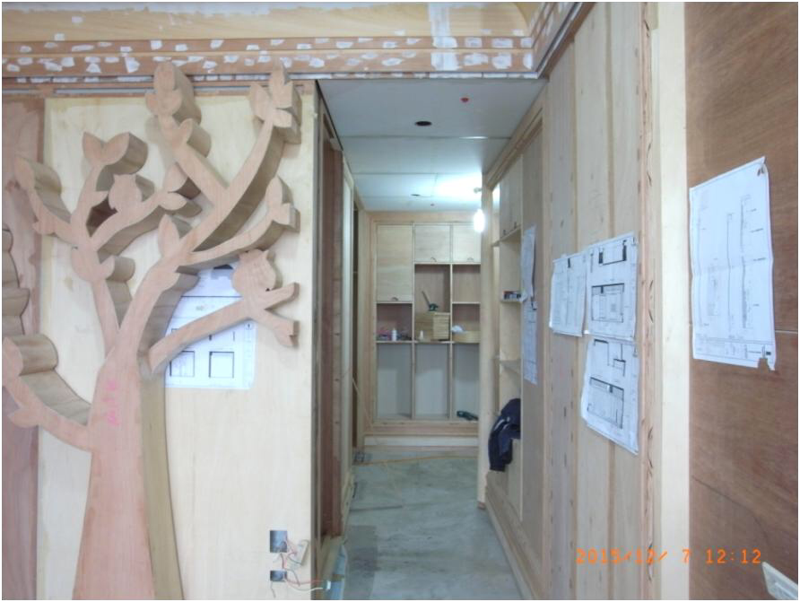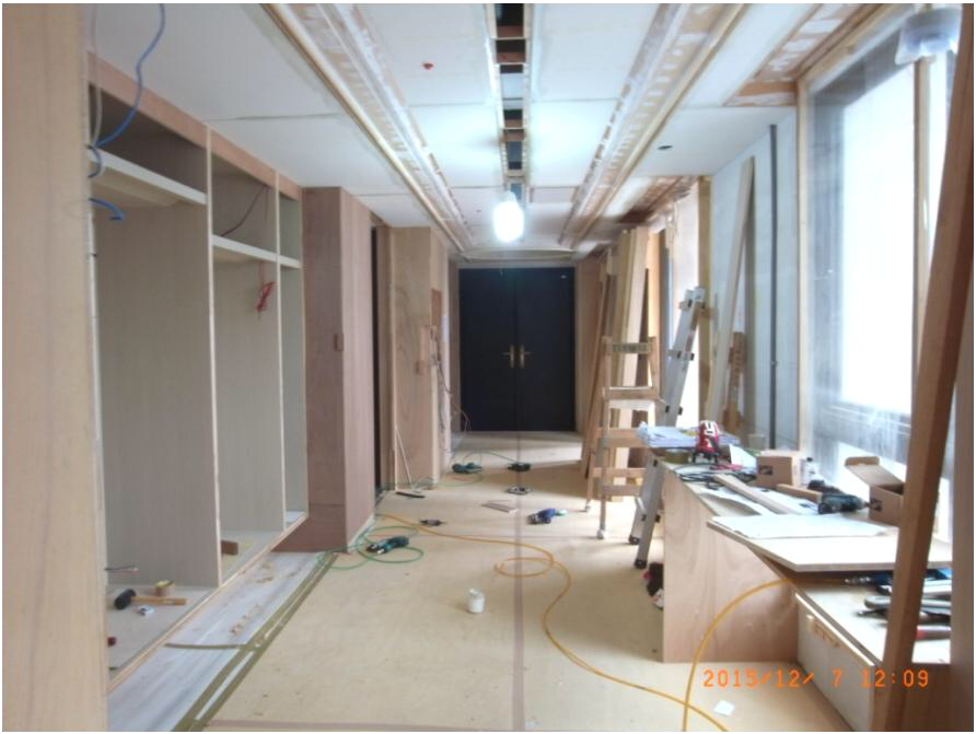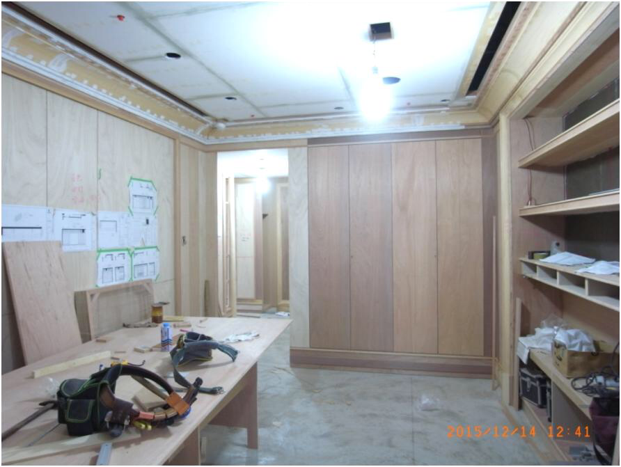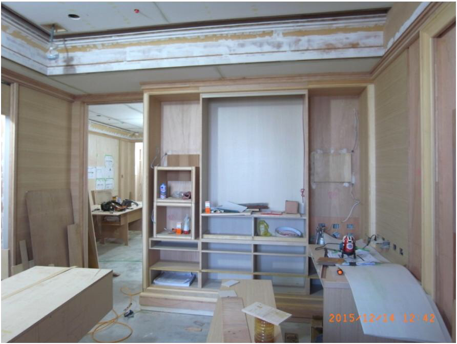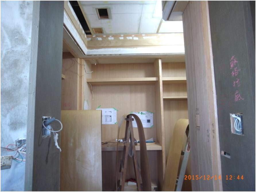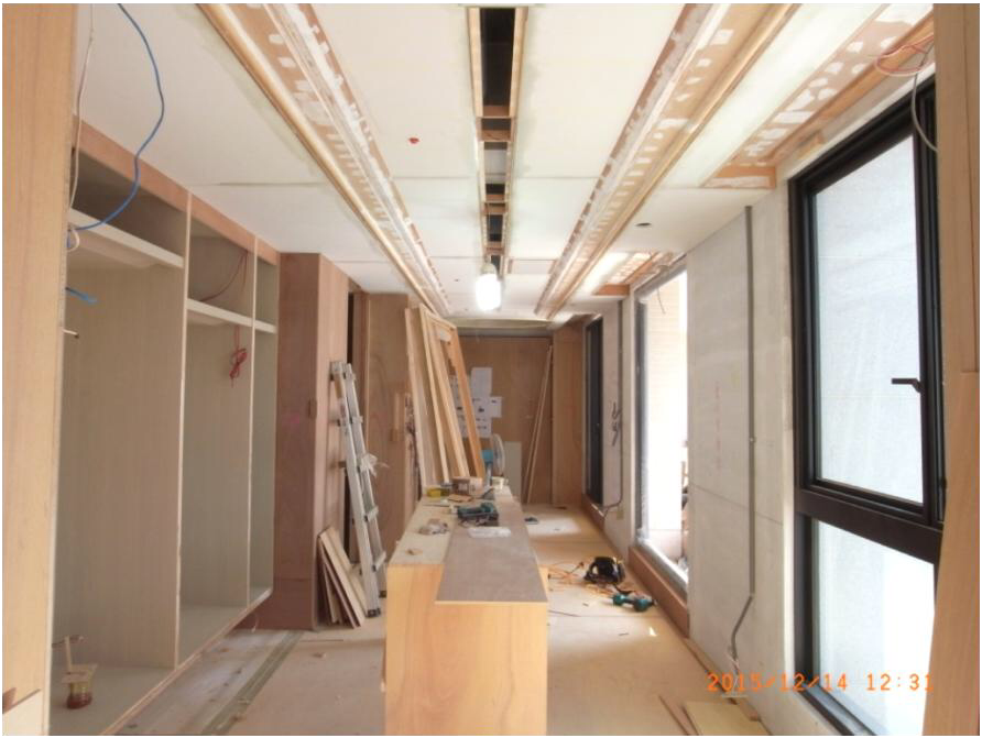 12/01-12/06玄關鞋櫃桶身施作完成收納衣櫃桶身施作完成壁面石材木作結構完成石材地坪完成,保護覆蓋完成社區電話,情控控制鍵,電梯呼叫鍵,空調集控結構完成整容間石材丈量客廳石材地坪完成,保護覆蓋完成多功能展示事務機櫃結構施作廚房天花批A.B劑填縫膠乾燥收縮內廊道壁面石材木作結構完成共同書房天花批A.B劑填縫膠乾燥收縮壁面造型壁板底板及踢腳線板完成造型書架金屬麗板支撐施作摺疊門造型電視櫃桶身安裝長輩房臥榻桶身完成壁面造型木皮壁板施作電視牆造型框架完成天花批A.B劑填縫膠乾燥收縮更衣間天花批A.B劑填縫膠乾燥收縮收納配件櫃桶身施作開放衣櫃桶身施作浴室石材丈量主臥室天花批A.B劑填縫膠乾燥收縮壁面造型線板施作更衣間天花批A.B劑填縫膠乾燥收縮浴室天花批A.B劑填縫膠乾燥收縮小孩室天花批A.B劑填縫膠乾燥收縮展示櫃收納門片完成木作活動樹型書架組裝完成更衣間收納衣櫃櫃內層板施作浴室天花批A.B劑填縫膠乾燥收縮後工作陽台L行落地窗窗框安裝空調室外機安裝定位