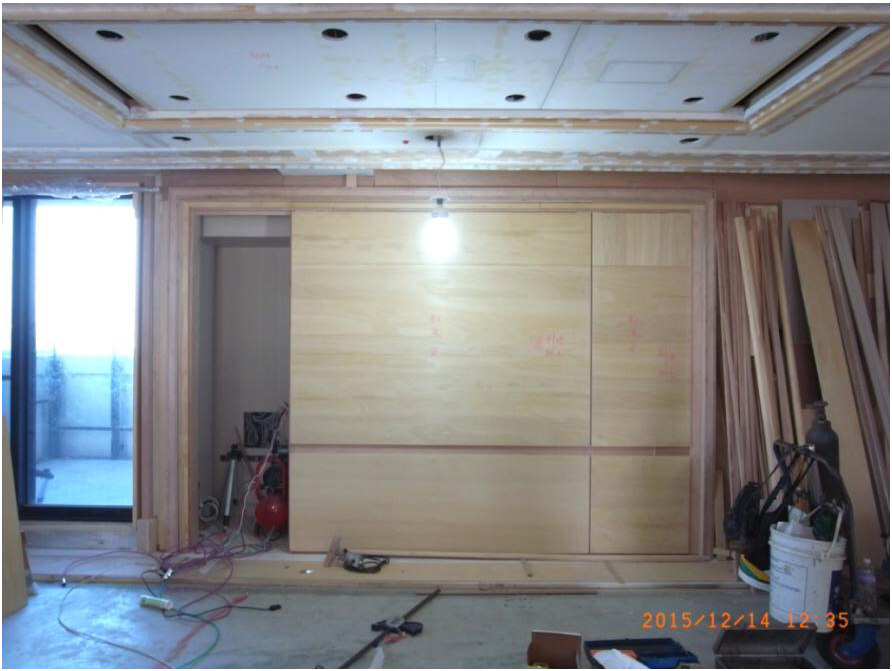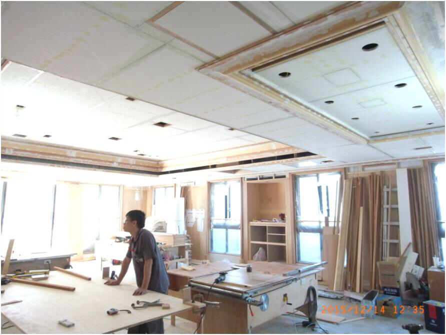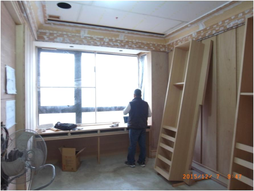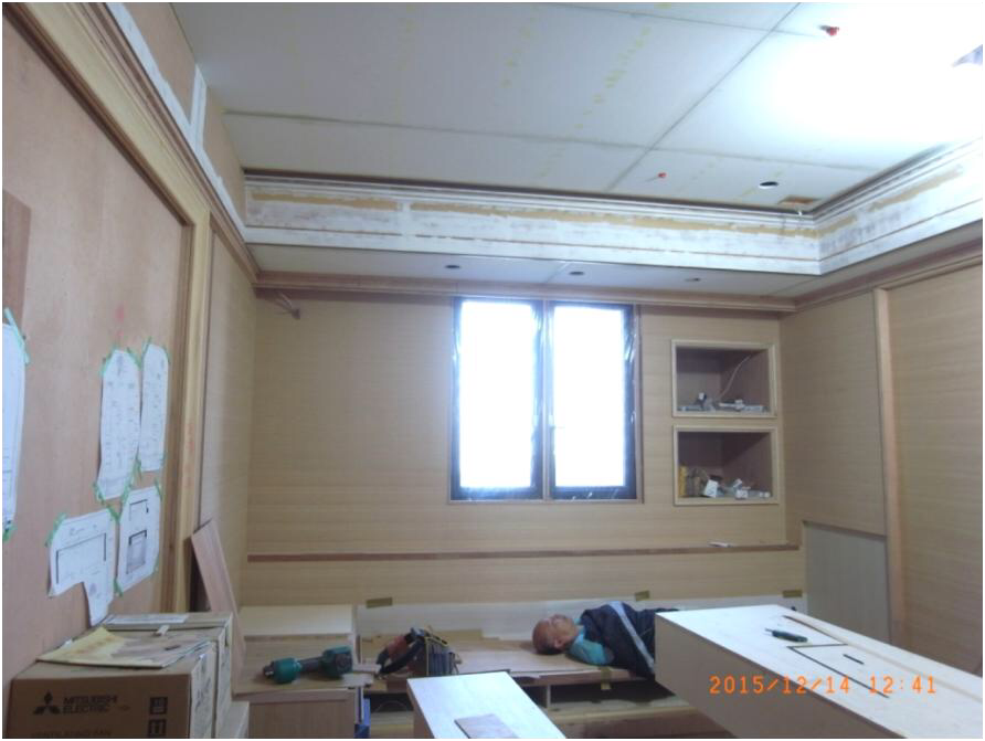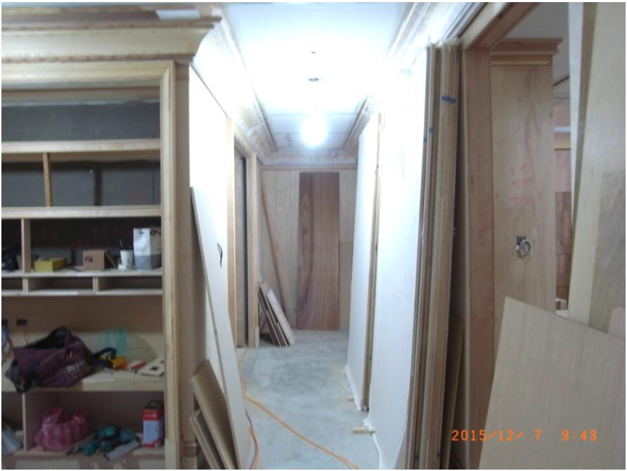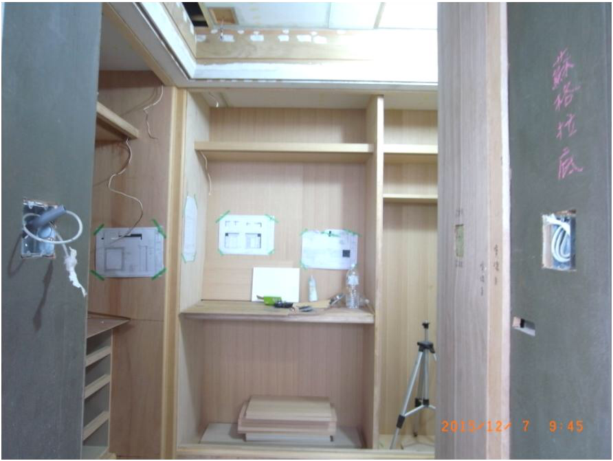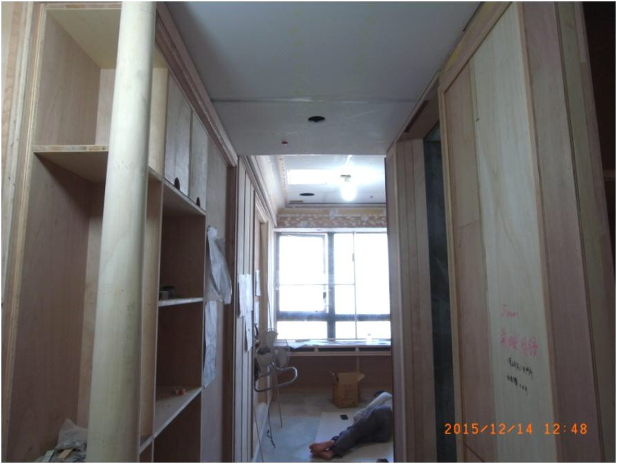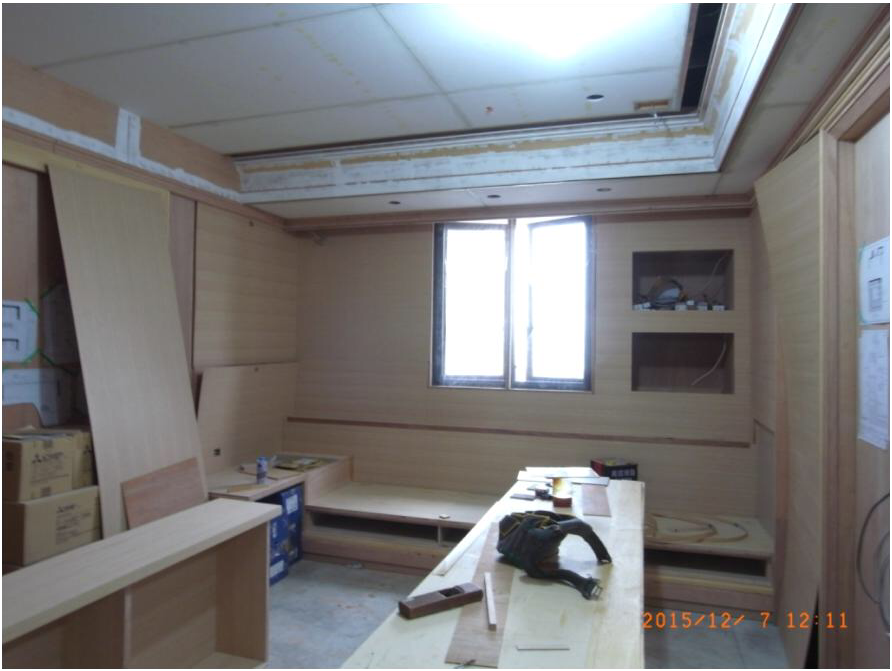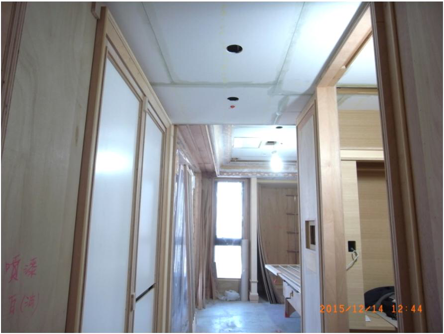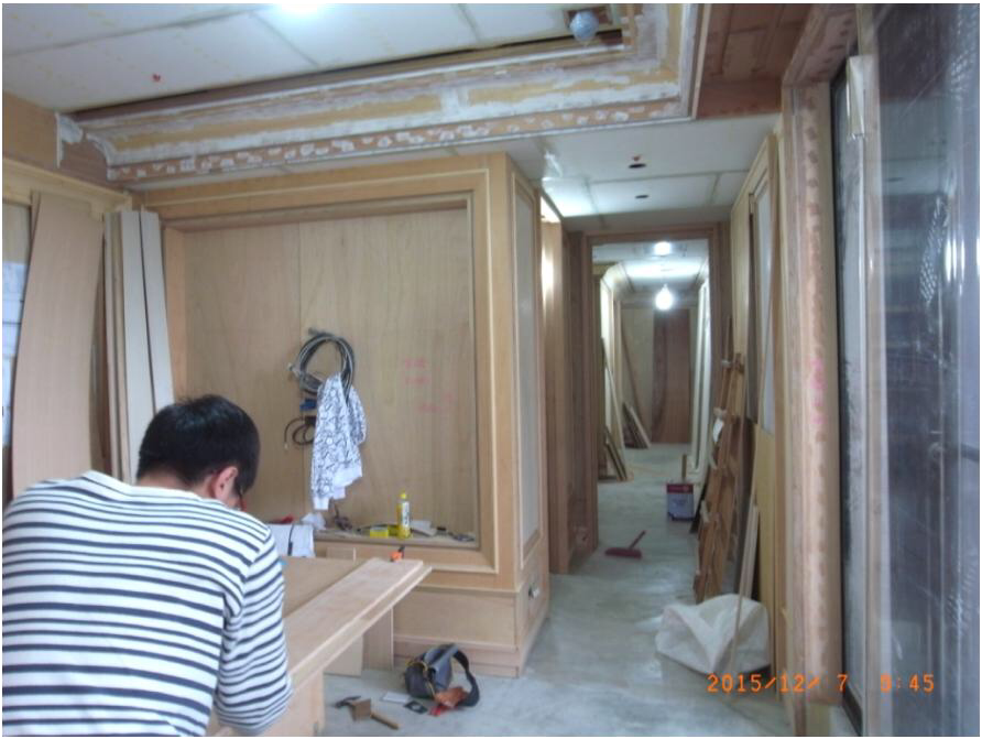 12/07-12/12玄關窗框人造石踏階結構施作鍍鈦金屬修飾框丈量整容間石材丈量客廳石材地坪完成,保護覆蓋完成電視牆鍍鈦金屬框架施作多功能展示事務機櫃桶身完成機櫃造型壁板結構完成廚房鍍鈦金屬流明天花骨架施作內廊道天花批A.B劑填縫膠乾燥收縮共同書房天花批A.B劑填縫膠乾燥收縮造型書架抽屜施作摺疊門造型電視櫃桶身完成(開)摺疊門造型電視櫃桶身完成(關)長輩房壁面造型木皮壁板施作天花批A.B劑填縫膠乾燥收縮更衣間天花批A.B劑填縫膠乾燥收縮收納配件櫃桶身施作開放衣櫃木皮施作浴室天花批A.B劑填縫膠乾燥收縮石材丈量主臥室天花批A.B劑填縫膠乾燥收縮壁面造型線板施作更衣間天花批A.B劑填縫膠乾燥收縮浴室天花批A.B劑填縫膠乾燥收縮小孩室天花批A.B劑填縫膠乾燥收縮入口門框完成浴室天花批A.B劑填縫膠乾燥收縮木作收納櫃桶身施作