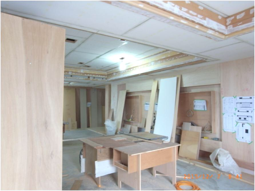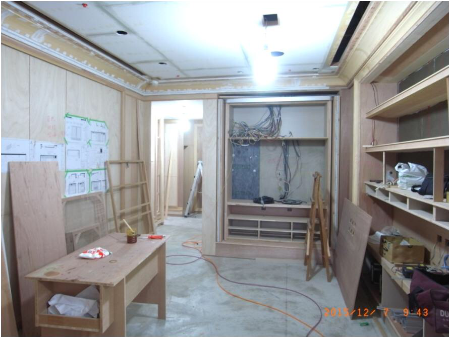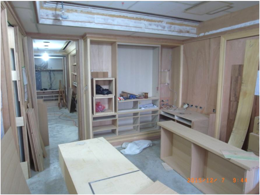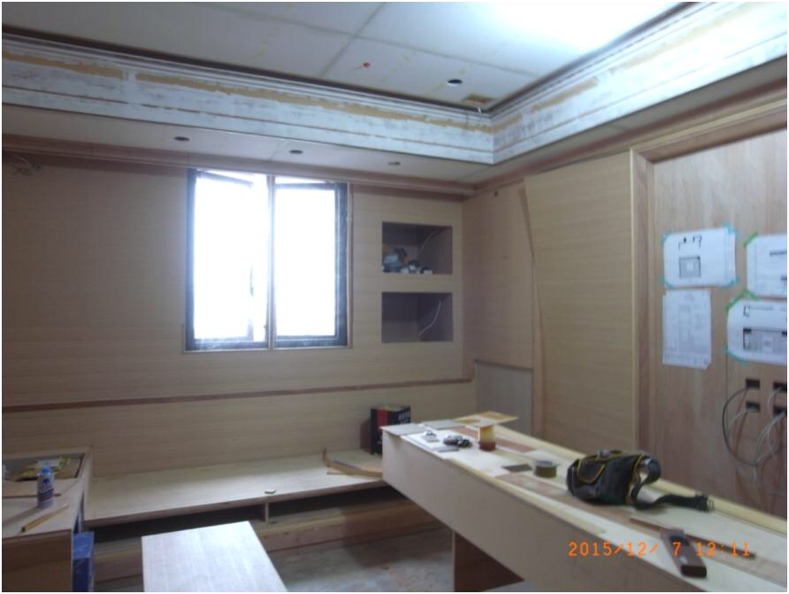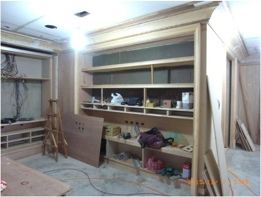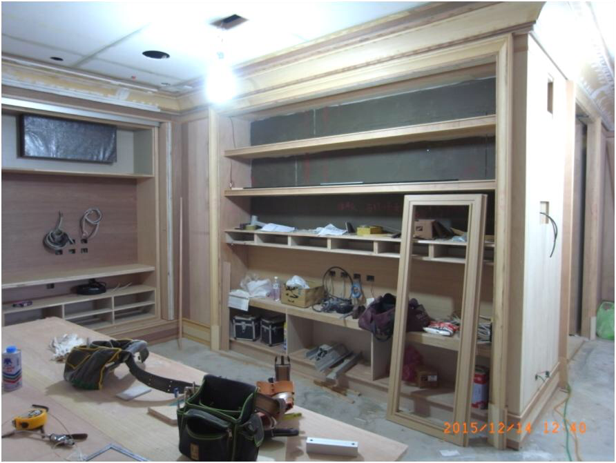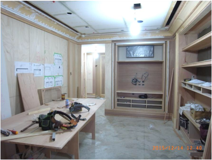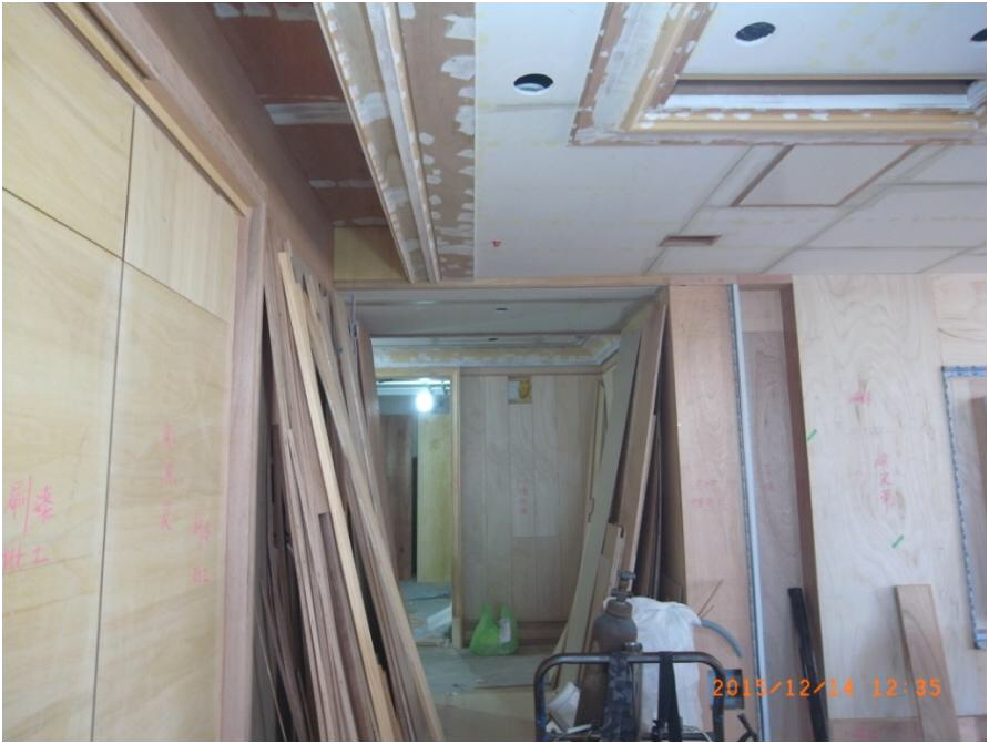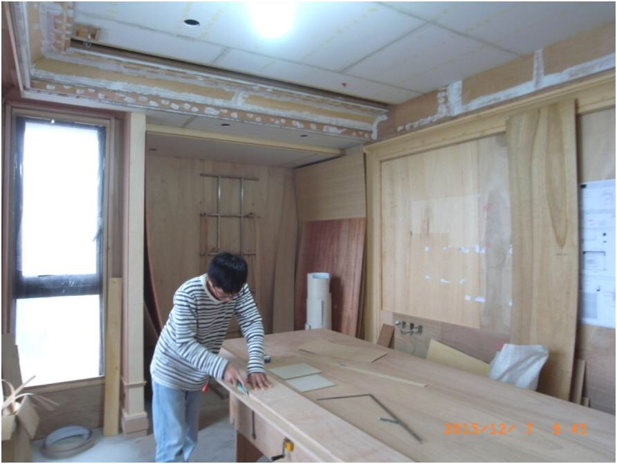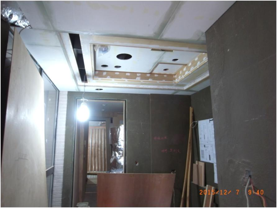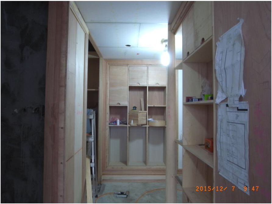 12/07-12/12玄關窗框人造石踏階結構施作鍍鈦金屬修飾框丈量整容間石材丈量客廳石材地坪完成,保護覆蓋完成電視牆鍍鈦金屬框架施作多功能展示事務機櫃桶身完成機櫃造型壁板結構完成廚房鍍鈦金屬流明天花骨架施作內廊道天花批A.B劑填縫膠乾燥收縮共同書房天花批A.B劑填縫膠乾燥收縮造型書架抽屜施作摺疊門造型電視櫃桶身完成(開)摺疊門造型電視櫃桶身完成(關)長輩房壁面造型木皮壁板施作天花批A.B劑填縫膠乾燥收縮更衣間天花批A.B劑填縫膠乾燥收縮收納配件櫃桶身施作開放衣櫃木皮施作浴室天花批A.B劑填縫膠乾燥收縮石材丈量主臥室天花批A.B劑填縫膠乾燥收縮壁面造型線板施作更衣間天花批A.B劑填縫膠乾燥收縮浴室天花批A.B劑填縫膠乾燥收縮小孩室天花批A.B劑填縫膠乾燥收縮入口門框完成浴室天花批A.B劑填縫膠乾燥收縮木作收納櫃桶身施作