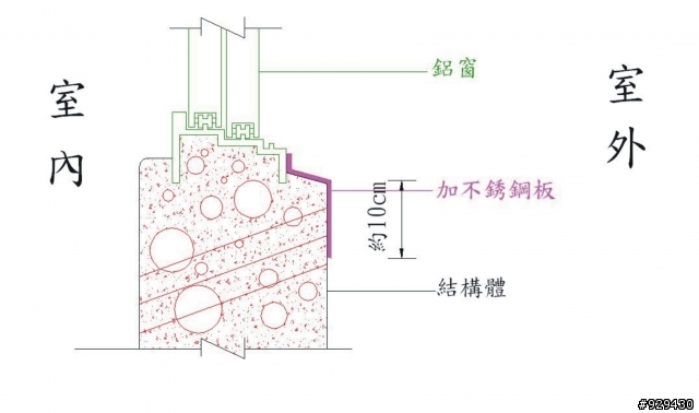 3. 更強化的可以貼上不織布於四周及窗角45度向外延伸(防止乾縮及應力裂縫), 表面再刷一層防水材