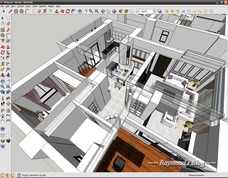 只要自己有想法畫Sketchup真的不難, 而且免費只要你去當漏下來開始用, 你就已經完成了50%剩下的50%就不難了下圖我家的3D圖, 自己煉裝潢雜誌裡每張你喜歡的圖, 套在不同的格局, 就不見得還是那麼漂亮了, 所以想畫3D來確認是對的強烈鼓勵你自己畫