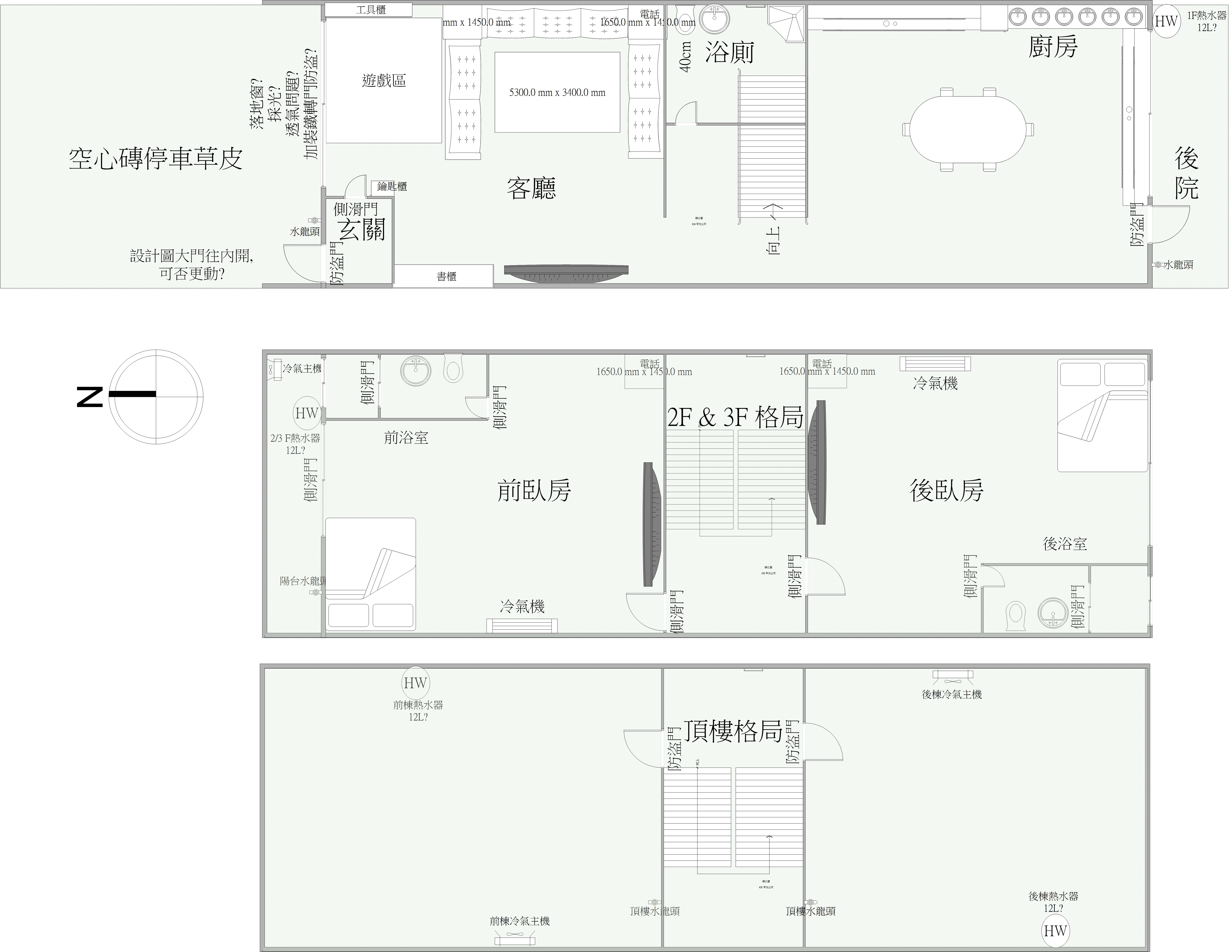 大致先如上圖規劃, 只是卡在熱水器和冷氣應該通通配置在頂樓,